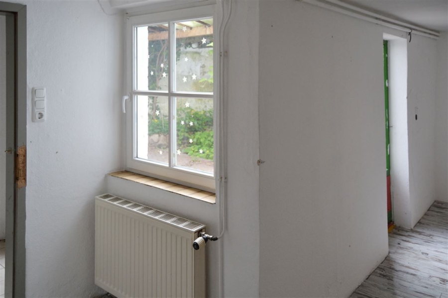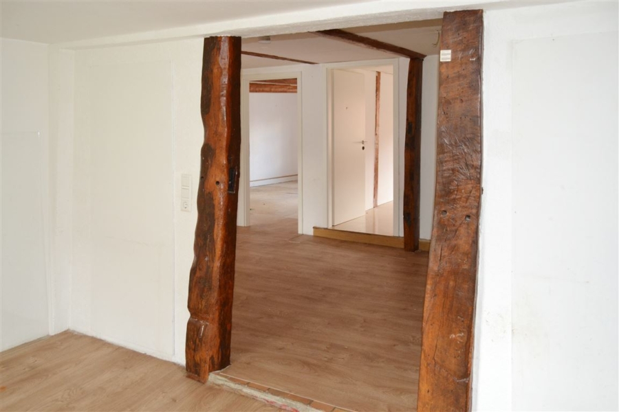 Sei es zur Eigennutzung als großzügiges Einfamilienhaus oder nach Umbau zur Vermietung mehrerer Wohneinheiten als Kapitalanlage – die denkmalgeschützte Immobilie bietet vielfältig Nutzungsmöglichkeiten und eignet sich sowohl zum Selbstbezug, als auch zur Fremdvermietung. Ausgehend vom Flur- und Eingangsbereich im Erdgeschoss sind das bisher als Wohn- & Küchenbereich genutzte Zimmer, drei weitere Räume sowie das innenliegende Badezimmer erreichbar. Letzteres ist mit einer bodentiefen Dusche ausgestattet. Sowohl der Flur, als auch der Wohn- & Küchenbereich bieten Zugang zum Innenhof.