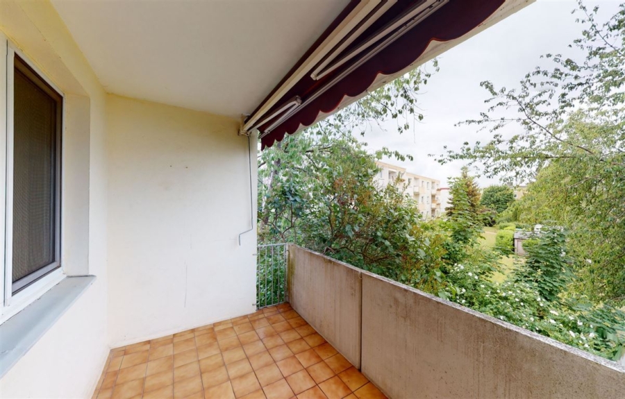 Ausgehend vom Flur- und Eingangsbereich sind alle weiteren Räume der Wohnung zu erreichen. Die angenehme Zimmeraufteilung und der praktische Zuschnitt ermöglichen unkompliziertes Einrichten und die Umsetzung der eigenen Raumvorstellung. Den Mittelpunkt der Wohnung stellt das rund 30 m² Wohnzimmer dar. Moderner Vinylboden und große Fenster verleihen der Wohnung einen hellen und modernen Charakter. Zudem bietet das Wohnzimmer Zugang zum südlich ausgerichteten, mit Markise versehen Balkon. Von hier aus lassen sich mit Blick ins entspannte Sonnenstunden und Abende im Freien verbringen.